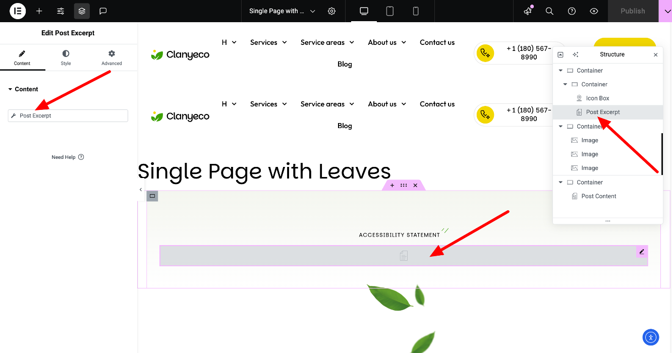 Edit the page's content easily, by locating each Elementor widget in the Navigator (The "Structure" section on the right)